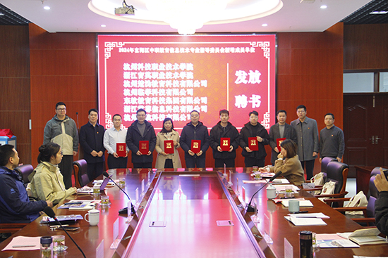 會議在夏峰巍校長歡迎辭中拉開帷幕,他對與會嘉賓的到來表示熱烈的歡迎和由衷的感謝,夏校長簡要介紹了學(xué)校的基本情況,并闡述了本次會議的目的:借助各位專家的豐富經(jīng)驗和專業(yè)視角,對學(xué)校的專業(yè)設(shè)置、課程教學(xué)等方面進行深入研討,以推動學(xué)校專業(yè)建設(shè)不斷邁上新臺階。接著,徐揚程介紹2024年信息技術(shù)專業(yè)指導(dǎo)委員會成員名單,并由夏峰巍校長和章文泉副校長為新增專業(yè)指導(dǎo)委員會成員單位頒發(fā)聘書,希望新加入成員單位能為學(xué)校專業(yè)發(fā)展和富陽經(jīng)濟增長貢獻力量。
