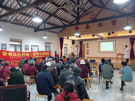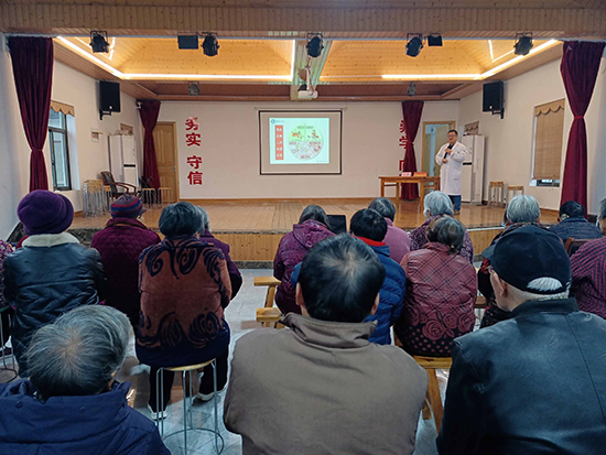 駱一舟著重介紹“高血壓”?,F在農村也太普遍了,按“高血壓病后果嚴重”“高血壓病的危害”“高血壓病病因”“生活方式與高血壓”“健康生活方式的目標”“高血壓治療原則”詳細講解。結合臨床病案分析“高鹽飲食、攝入過多脂肪及垃圾食品、過量飲酒、吸煙、菜果攝入少、體力活動不足”等是高血壓病的主要原因。指出飲食注重“二多二少一低”即“多蔬果、多高纖、少加工食品、少調味品與低油脂”,在“祝大家身體健康”聲中結束了講座。老人們熱烈拍手。