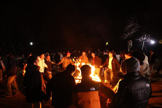 當夜幕降臨,徐鳧巖露營基地瞬間化身為夜晚狂歡的舞臺,一場盛大的篝火晚會將現場的氣氛推向了高潮。正如23級的尼瑪桑珠在感言中生動描繪的那樣:“我們點燃了篝火,那火苗子躥得老高,就像一群調皮的小精靈在盡情地跳舞,火光映照在周圍每個人的臉上,將他們的臉龐染成了熟透的紅蘋果,紅撲撲的。我們圍著篝火,一起跳鍋莊,每個人臉上都洋溢出幸福的笑容,在這一刻‘自由自在’這個詞具象化了。”這正是孩子們內心喜悅的真實寫照。