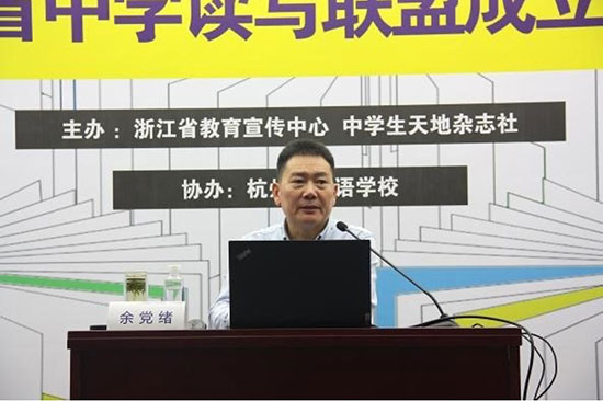 成立儀式上,副校長朱曉慧作為學校代表領取“浙江省中學讀寫聯(lián)盟成員學校”銅牌,學生處處長楊育萍領取浙江省中學讀寫聯(lián)盟頒發(fā)的指導師聘書。