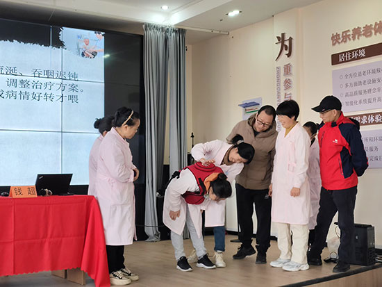 簽約過后,備受期待的老人風(fēng)險(xiǎn)處理與急救培訓(xùn)講座緊鑼密鼓展開。專業(yè)教師錢超老師聚焦老年人日常生活中的跌倒、突發(fā)心腦血管疾病等常見風(fēng)險(xiǎn),運(yùn)用模擬人偶、視頻案例等直觀方式,深入淺出講解心肺復(fù)蘇、氣道異物梗阻等急救技巧。臺(tái)下護(hù)工全神貫注,不時(shí)提出疑問,互動(dòng)環(huán)節(jié)中,多位護(hù)工踴躍上臺(tái)實(shí)操練習(xí),在錢老師的悉心指導(dǎo)下,逐漸掌握關(guān)鍵要領(lǐng),現(xiàn)場學(xué)習(xí)氛圍濃厚熱烈。
