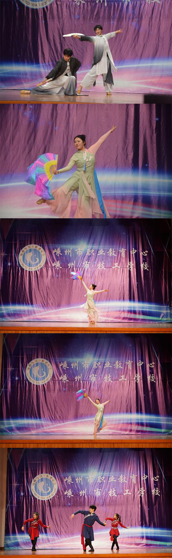 舞蹈《煙雨行舟》、小品《四大才子》、歌曲《天路經幡》,或舞姿蹁躚,或活力四射,或獨具民族風情,贏得了觀眾的陣陣掌聲。由錢磊老師與22創新學前班合作呈現的高考舞蹈匯報展示,師生默契配合,將平日技能訓練的成果融入到剛柔并濟的舞姿中,一步一躍皆如行云流水,衣袂飄飄滿是風姿。由王秋偉副校長、姚新兵副校長及電子部部長高云斌帶來的歌曲串燒,更是將整場演出推向高潮,《天地龍鱗》《英雄淚》《向天再借五百年》《中國人》,拳拳赤子心,濃濃愛國情。音樂拉近了彼此的距離,真摯的師生情、純真的同窗情在慷慨激昂的歌聲中迸發和升華。
