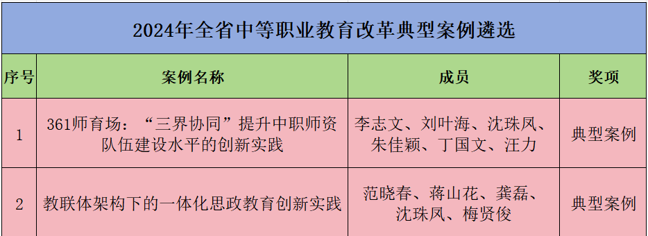 近日,浙江省教育科學研究院公布了2024年全省中等職業教育改革典型案例的遴選結果。嘉興市建筑工業學校提交的《361師育場:“三界協同”提升中職師資隊伍建設水平的創新實踐》與《教聯體架構下的一體化思政教育創新實踐》兩項案例,憑借創新的教育理念、深入的教育實踐和顯著的教育成效,雙雙入圍典型案例。
