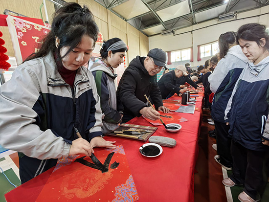 浙江老年開放大學(xué)平湖學(xué)院作為共建單位,助力活動(dòng)開展。書法創(chuàng)作班的老年學(xué)員們?cè)邶弴?guó)銘老師的帶領(lǐng)下,與新疆學(xué)子共同書寫新春祝福,傳遞代際溫情。