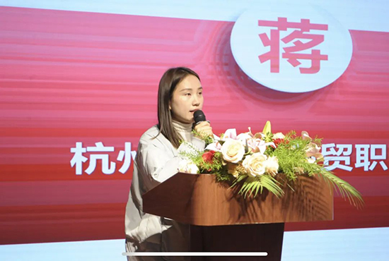 臨平大酒店經理毛罕焉作為企業代表上臺發言,她詳細介紹了酒店的企業文化、發展歷程以及對人才培養的重視,并對即將進入崗位實踐的學生們提出了殷切期望。毛經理表示,企業將為學生們提供優質的實踐平臺,幫助他們將理論知識與實際操作相結合,助力他們成長為行業中的優秀人才。