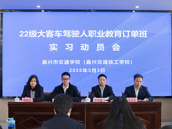 當天,在嘉興市交通學校(嘉興交通技工學校)舉行了實習動員會。嘉興市嘉通交運集團有限公司(籌)黨委副書記、總經理沈洪兵,學校黨支部副書記、常務副校長許賢超,以及校企雙方相關部門負責人出席了會議。