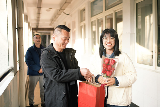 陽光明媚,笑靨如花,這個美好的清晨,在臨平職高的校門口、校園里,一聲聲祝福、一句句問候,道出了學校領導對學校女教師們的關心關愛,溫暖的情誼灑滿整個校園!