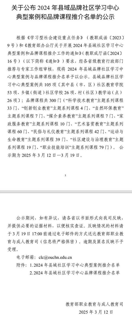 日前,教育部印發了《關于推介2024年縣域社區學習中心典型案例和社區教育品牌課程的通知》,全國共有53項縣(市、區)社區教育學院申報典型案例獲獎!其中,西湖區社區學院申報的《善學西湖:“鏈式思維”賦能生態學習圈建設的區域實踐》榜上有名!