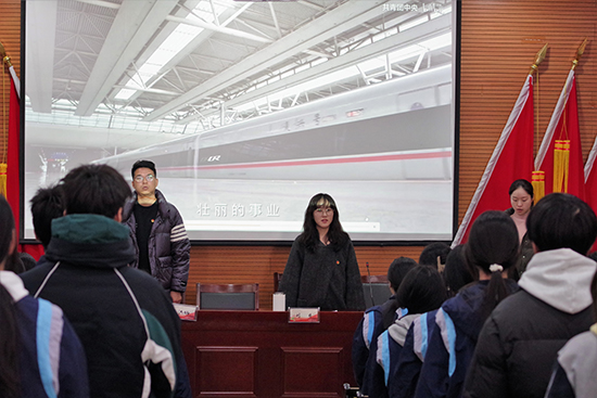 劉栩吟老師主持集中學(xué)習(xí)環(huán)節(jié),重點(diǎn)圍繞習(xí)近平總書記關(guān)于青年工作的重要論述展開深入學(xué)習(xí)。全體團(tuán)員起立齊聲誦讀習(xí)近平總書記提出的"五個模范"行動指南,鏗鏘有力的聲音在階梯教室內(nèi)久久回響,團(tuán)員們更深刻認(rèn)識到共青團(tuán)作為黨的助手和后備軍的歷史使命。