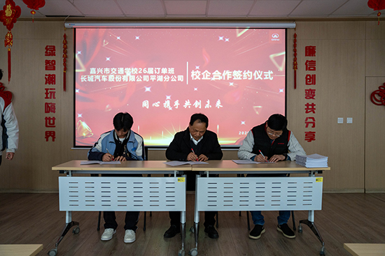 嘉興市交通學校(嘉興交通技工學校)是第一個和長城汽車簽訂校企合作的學校。自2020年起,學校依托嘉興市交通職業(yè)教育集團,與長城汽車共建產業(yè)學院,形成“共商、共建、共育”的協(xié)同育人模式。首批32名學生曾赴河北保定總部接受3—6個月培訓,學成后成為平湖分公司的首批技術骨干。通過與長城汽車開展深度合作,開設訂單班,定向培養(yǎng)汽修、新能源汽車裝調等專業(yè)人才,拓展雙方實習就業(yè)一體化通道,推動人才培養(yǎng)與區(qū)域經濟深度融合。