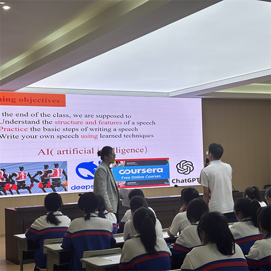 教學實踐的魅力在課堂綻放。鄭瑩瑩老師執(zhí)教的科技主題英語演講稿的拓展課,以“讀——練——評——創(chuàng)”四步閉環(huán)設計,將前沿科技素材轉(zhuǎn)化為寫作動能,學生在跨學科情境中實現(xiàn)語言能力與思維品質(zhì)的雙重躍升。羅曉霞老師則化身“語法偵探”,以連詞解題為突破口,獨創(chuàng)“語境溯源——邏輯推演——多維驗證”三步解碼術,為語法填空教學開辟新徑。