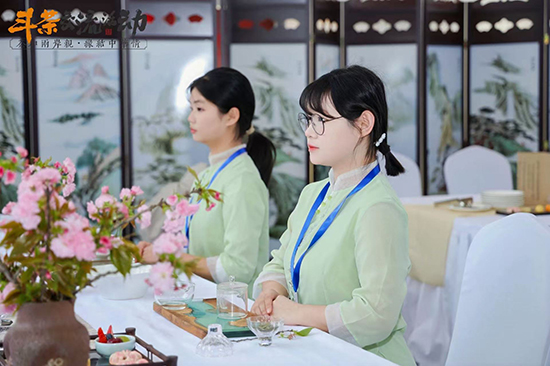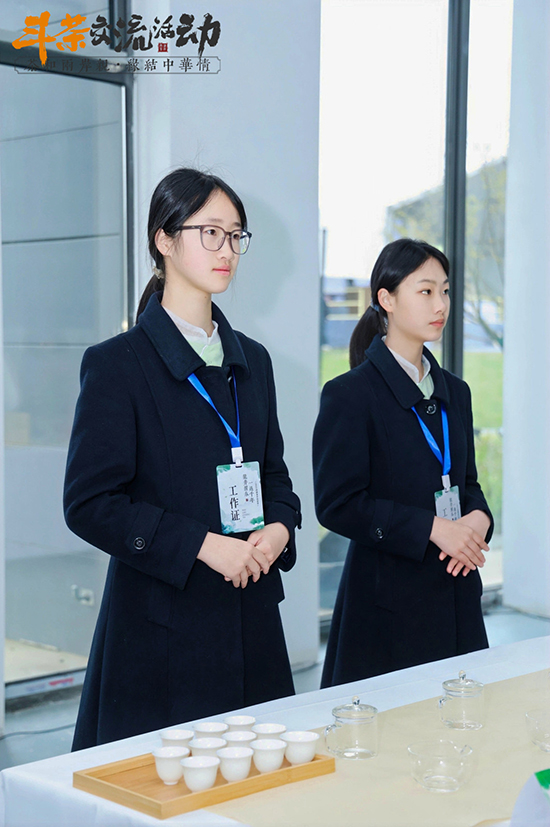 斗茶交流活動組協助評審流程,近距離學習專家對60余種西湖龍井茶樣的品鑒技巧,并參與臺灣高山烏龍茶的品飲服務,深入體會兩岸茶藝的異同。