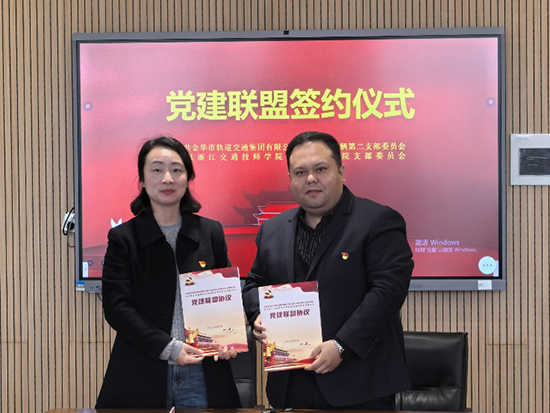 為深入貫徹落實黨的二十屆三中全會精神和《教育強國建設規劃綱要(2024—2035年)》,發揮黨建引領作用,匯聚合力提升高技能人才培養質量,近日,浙江交通技師學院運輸管理學院黨支部與金華市軌道交通集團運營有限公司車輛第二黨支部黨建聯盟簽約儀式在暢行樓B203會議室隆重舉行。雙方商定一同開展“校企五同黨建+”,推動校企思想同向、雙師同導、文化同頻、平臺同創、資源同享,進一步深化校企合作,助力地方軌道交通事業高質量發展。