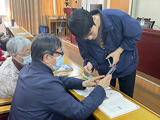首場課程主要圍繞硬件操作展開。新碶成校的老師以通俗易懂的語言,詳細講解了手機的初始設置,包括連接網絡、調整字體大小、設置密碼以及手寫設置等內容,還對日歷、備忘錄、鬧鐘、應用商城等自帶應用的使用方法進行了演示和指導。不少老人此前對智能手機操作感到陌生和困惑,在老師和志愿者們手把手的教學下,逐漸掌握了基本操作,臉上露出了開心的笑容。
