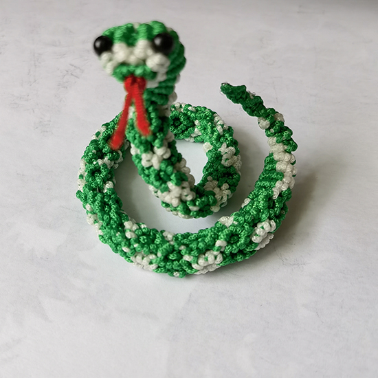 采荷街道社區學?;顒邮依?,一場別開生面的結藝編織課正在進行,興趣相投的老年人圍坐一起結社而學。先將線對折打金剛結,留出合適的長度后穿入轉運珠,再調整繩結的松緊……,社區大先生王老師耐心講解著編織技巧,老人們一邊認真聆聽,一邊反復練習,遇到復雜步驟便互相交流探討,在老師的指導下,手中的線逐漸勾勒出精致的手鏈、戒指,以及惟妙惟肖的小蛇掛飾等手工藝品。