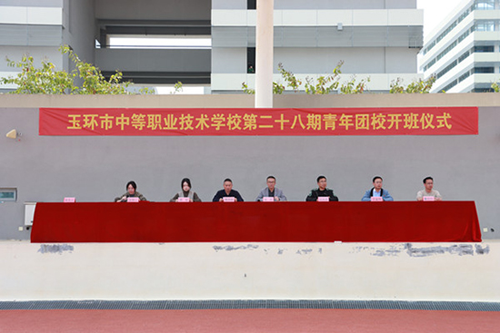 4月8日中午,玉環市中等職業技術學校在學校體育場舉行第二十八期青年團校開班典禮。德育分管校長金松,輔導員汪光岳、王金偉、董志華、蔡其標,團委書記袁安以及597名學員參加。活動由團委副書記林旭環主持。