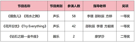 浙江省湖州藝術與設計學校參演節(jié)目表現(xiàn)不俗,均獲得了優(yōu)異的成績。器樂作品《鉆石之眼·金牛座》用鋼琴和揚琴的雙重奏形成文化對話;聲樂作品《花開忘憂》傳遞治愈力量,《Try Everything》則以活力四射的合唱點燃全場。《摸魚兒》以現(xiàn)代編曲詮釋古詩詞,《雨水之舞》的空靈和聲模擬自然韻律,生動詮釋藝校學子對生態(tài)理念的藝術表達。(許竹婷)