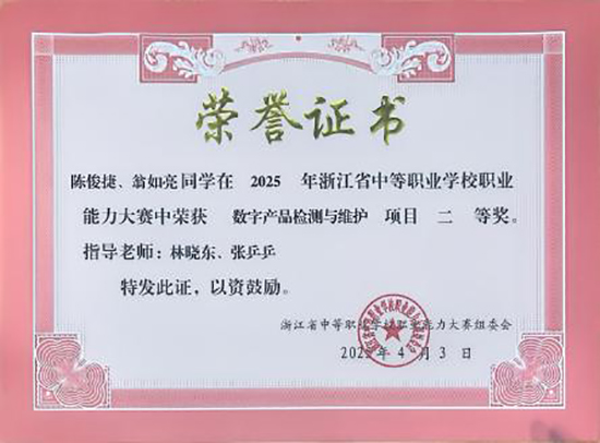 4月3日,2025年浙江省中等職業學校職業技能大賽賽場捷報頻傳,溫州市職業中等專業學校信息學部師生憑借卓越實力與頑強拼搏精神,在“物聯網應用與服務”與“數字產品檢測與維護”兩大賽項中斬獲佳績。
