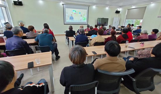 本次養生知識視頻學習活動圍繞老年人常見健康需求,精選優質教學資源,內容涵蓋中醫養生、慢病管理、科學飲食、運動保健、心理健康等等。為方便老年人學習,活動采取靈活多樣的形式,其中線下集中學習部分,每周二上午在羅村老年活動室播放養生視頻,并安排專業社工現場指導;另外線上自主學習部分,通過社區微信公眾號“健康養老”專欄,老年人可隨時觀看教學視頻,在家就能輕松方便地了解養生知識。在今天的線下集中培訓中,老年朋友們認真觀看視頻,跟隨教學演示練習養生操,并積極交流心得。學員張阿姨說:“視頻里醫生講得清楚,動作演示也慢,我坐在位置上邊聽邊跟著做些簡單的頸椎操,頭暈好多了!”