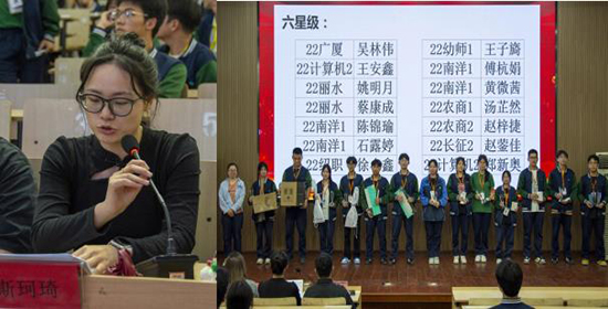 校團委倪超琦老師宣讀上學期以來各個部門成員星級考核名單,隨后由啟行學部團總支書記斯珂琦老師、啟德學部團總支書記鄭楊潔老師、啟知學部團總支書記王彬倩老師為優秀學生會干部頒獎。