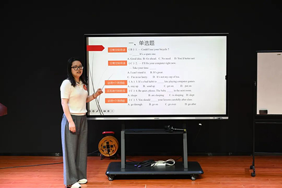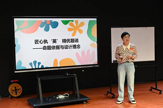 從單選題的經(jīng)典重構(gòu)到閱讀題的跨學(xué)科選材,再到寫(xiě)作題的生活化設(shè)計(jì),選手們的命題作品緊扣學(xué)科核心素養(yǎng)及教學(xué)評(píng)一致性,又充滿智慧與巧思。命題選材熱詞頻現(xiàn):人工智能,環(huán)境保護(hù),一帶一路。一張A4紙?jiān)嚲砜梢匀菹抡麄€(gè)世界。而寫(xiě)作題可以化身為給未來(lái)自己的一封信,也可以是體重管理的自律倡議書(shū)。說(shuō)題環(huán)節(jié)更是亮點(diǎn)頻出,從學(xué)情適配到測(cè)評(píng)維度,教師們金句不斷:“題目不是終點(diǎn),而是思維的起點(diǎn)”“好的命題要像一座橋,連接知識(shí)與生活”。