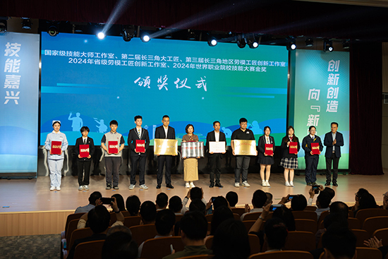 市人大常委會副主任、市總工會主席曹國良出席 2025年“嘉興工匠月”系列活動暨首屆職工創新成果交流活動啟動儀式并致辭,副市長邢海華出席并為2024年世界職業院校技能大賽金獎選手頒獎。