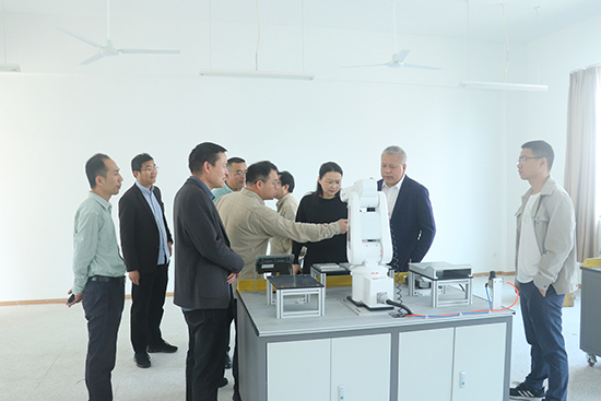在聞濤樓(電子實訓樓),調研組實地考察了學校“產教融合、工學結合”的辦學實踐基地。電子電器應用與維修專業的學生們正在流水線生產實訓車間進行實操訓練,他們嫻熟的設備調試技能充分展現了學校“做中學、學中做”的教學特色。在物聯網理實一體化實訓室和1+X可編程控制器實訓室,調研組詳細詢問了專業建設與產業發展對接情況,對學校“課證融通”的人才培養模式給予了高度評價。