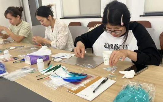 受湖州市殘聯委托,浙江省湖州藝術與設計學校于5月9日至13日承辦2025年全國殘疾人崗位精英職業技能競賽選手培訓班,為全市17名殘疾人選手提供點翠工藝飾品設計和評茶師兩個項目的系統性賽前集訓。作為國家級殘疾人職業培訓基地,學校充分發揮資源優勢,以高標準、高質量教學服務助力殘疾人職業技能人才培育。