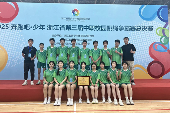 5月10日至12日,2025年浙江省第三屆中職校園跳繩爭霸賽總決賽在寧波市古林職業高級中學激烈展開。德清職業中專跳繩隊在教練員黃浙、張富老師的精心指導下,隊員們以“繩”為刃,在30秒單搖、3分鐘10人“8”字跳等項目中展現出驚人的速度與耐力,最終憑借扎實的基本功和默契的團隊配合,在全省11個市的19支代表隊中脫穎而出,最終斬獲團體三等獎。