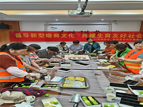 實操環節,老人們紛紛大顯身手。有的小心翼翼地將蒸好的綠豆泥過篩,力求得到細膩的口感;有的專注地往綠豆泥里加入白砂糖和玉米油,仔細翻炒,直到餡料變得濃稠適中;還有的拿著各式精美的模具,將粉團認真揉捏后填入其中,輕輕按壓,脫模時,一個個印著花朵、福字等圖案的綠豆糕躍然眼前。大家相互交流經驗,分享技巧,歡聲笑語不斷。