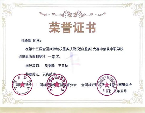 雞尾酒調制項目一等獎(第6名)