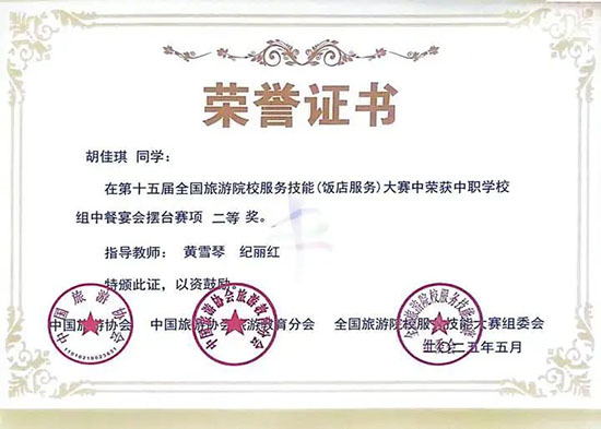 本次大賽匯聚全國28個省、自治區、直轄市的185所院校、596 名選手參賽,分本科院校組、高職高專院校組和中職學校組,設中餐宴會擺臺、西餐宴會擺臺、客房服務、雞尾酒調制四大競技模塊。各項目融合理論考核、英語測試、現場實操三重考核,全面考查學生飯店服務綜合能力。這場覆蓋全國28個省市的行業頂級賽事,堪稱“飯店服務界的奧林匹克”。學校選手優異成績的背后,是日均12小時的技能淬煉與超越 28省的競技印證,更彰顯了參賽學生的拼搏精神與指導教師團隊的匠心培育。