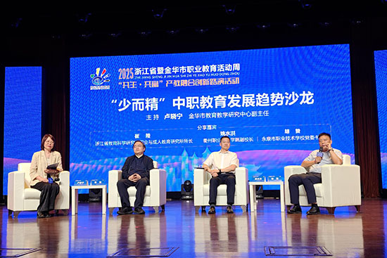 5月11日,2025年浙江省暨金華市職業(yè)教育活動(dòng)周啟動(dòng)儀式在金華職業(yè)技術(shù)大學(xué)隆重舉行。永康市職業(yè)技術(shù)學(xué)校黨委書記胡贊作為特邀嘉賓,出席同期舉辦的專家論壇,與省內(nèi)職教領(lǐng)域權(quán)威專家共研“共同富裕背景下‘少而精’中職教育發(fā)展”核心議題。