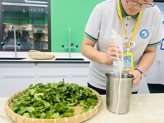 紫草膏、艾草薄荷膏及香囊所需中草藥大部分來自學校百草園,由科普隊的師生們精心栽培種植、細心養護。當此端午之際,正是艾草、薄荷、玫瑰花飄香的好時節,科普隊的師生們提早采摘,并以橄欖油、山茶油深度浸泡、提取,加入天然蜂蠟融合,最終制成配方獨特、止癢效果顯著的紫草膏與薄荷膏。而香囊所用中藥香料同樣經過仔細挑選、研磨、包裝,每個環節均由老師嚴格把關,每道工序均由科普隊的師生們親自手作,每件作品無不寄托著對老師們濃濃的愛意和深深的祝福。