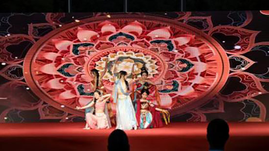 當(dāng)搖滾的熱血漸漸沉淀,同學(xué)們沿著時光長河溯流而上,回到了千年前那個駝鈴悠揚的敦煌,沉浸感受了由2222班楊芷杭等同學(xué)帶來的舞蹈《萬物生》。