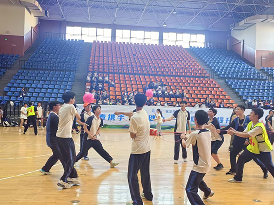在“鼓球合聲”的賽場上,24計算機大專2班的10名同學和1位高個子助手組成的“迪奧先生”隊上演了一場跌宕起伏的“同心曲”。比賽開始前,隊員們圍圈討論:“鼓面要平,拉力要均勻,眼睛盯著球!”志愿者李興安主動承擔發球和撿球,笑著說:“你們負責顛球,我負責保駕護航。”最后他們鼓球合聲42下,讓其他組驚訝于他們的默契程度。