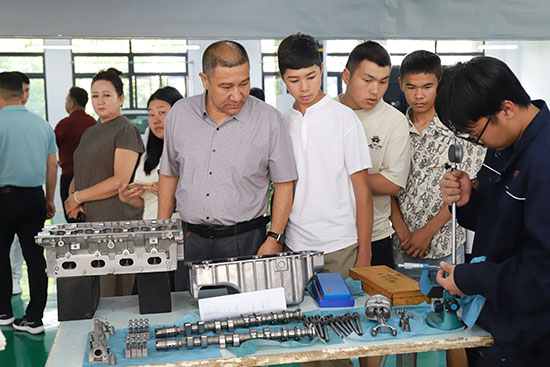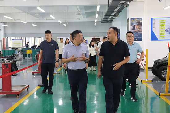考察團首先實地走訪了學校產教融合實踐基地。在汽修車間,智能化實訓設備與真實企業場景的無縫銜接令來賓駐足;門業生產線展示了從設計到成品的全鏈條工藝,凸顯“校中廠”模式特色;模具產學研中心則通過高精度數控設備與師生創新成果,生動詮釋了“產學研用”一體化培養理念。