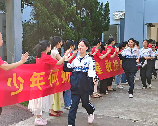 擊掌儀式現場,老師們高聲吶喊“沉著應考,金榜題名”“你們是最棒的”,學生們則信心滿滿,以燦爛的笑容和堅定的目光回應師長的期待。紅色的身影與青春的笑顏交織,成為校園里最動人的風景。