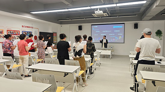 活動(dòng)伊始,在老師的帶領(lǐng)下,學(xué)員們一同回顧了這三個(gè)月的學(xué)習(xí)時(shí)光,屏幕上展現(xiàn)的每一首歌曲都承載著學(xué)員們的努力與堅(jiān)持,見(jiàn)證著他們的成長(zhǎng)與進(jìn)步。隨后,全體學(xué)員共同合唱了這三個(gè)月來(lái)學(xué)過(guò)的歌曲,熟悉的旋律在教室內(nèi)回蕩,大家用歌聲表達(dá)著對(duì)音樂(lè)的熱愛(ài)和對(duì)這段學(xué)習(xí)經(jīng)歷的珍視。