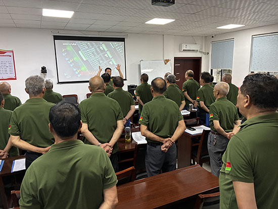 課堂伊始,便展現出令人肅然起敬的軍人風貌。老兵們身著象征生命與忠誠的綠色軍裝T恤,自發按照部隊要求,整齊地站立在座椅后方,雙手背于身后,右手緊握成拳,左手堅定地握住右手腕——一個象征著力量、團結與紀律的獨特軍姿。這無聲的隊列本身,就是一首最嘹亮的軍歌,瞬間將課堂氛圍拉回那熱血沸騰的軍營歲月。