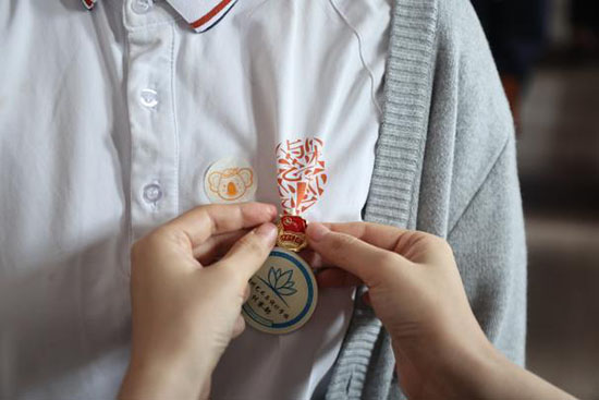 隨后,團委老師為新團員佩戴團徽并頒發(fā)團員證。這枚小小的團徽背后,是無數(shù)共青團員對理想信念的堅守和接續(xù)奮斗的決心。