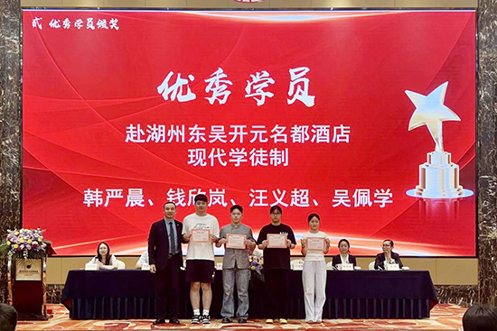 6月23日下午,浙江省湖州藝術(shù)與設(shè)計(jì)學(xué)校2025年旅游服務(wù)與管理專(zhuān)業(yè)現(xiàn)代學(xué)徒制總結(jié)與表彰大會(huì)在湖州東吳開(kāi)元名都酒店舉行。此次大會(huì)旨在總結(jié)現(xiàn)代學(xué)徒制項(xiàng)目成果,表彰優(yōu)秀學(xué)員和帶教師傅,進(jìn)一步深化校企合作,共育高素質(zhì)技能人才。