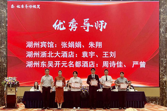 湖州賓館、浙北大酒店、湖州東吳開(kāi)元名都酒店領(lǐng)導(dǎo)為十位優(yōu)秀學(xué)員頒發(fā)榮譽(yù)證書(shū)。費(fèi)永軍副校長(zhǎng)為6位優(yōu)秀企業(yè)導(dǎo)師頒發(fā)榮譽(yù)證書(shū);優(yōu)秀學(xué)員代表2219班汪義超同學(xué)作學(xué)徒分享;學(xué)校綜合專(zhuān)業(yè)部副部長(zhǎng)孫葉玲,就本次現(xiàn)代學(xué)徒制的教學(xué)實(shí)施與考核評(píng)估作專(zhuān)業(yè)總結(jié)。