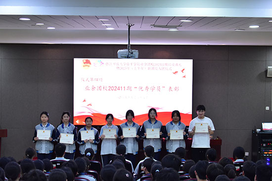 校黨委委員、德育分管院長(團校校長)唐瑛,校政教處主任(團校副校長)方建衛,校團委書記(團校副校長)劉非,校團委副書記朱洪炳及團委委員駱舒婕老師、各團支部書記、業余團校202411期198位學員代表齊聚一堂,共同見證這一重要時刻。本次活動由校團委干事劉栩吟老師主持。