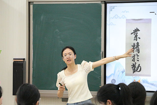 “業(yè)精于勤”乃千年古訓(xùn),本節(jié)書法課聚焦這四個楷字的結(jié)體法則,以中國建筑、動漫等比喻漢字結(jié)構(gòu),引發(fā)聯(lián)想,最終職教學(xué)子的楷書作品在展板上鋪開,那些或端莊或稚拙的字體結(jié)構(gòu),正是千年法度與現(xiàn)代工匠的時空對話。