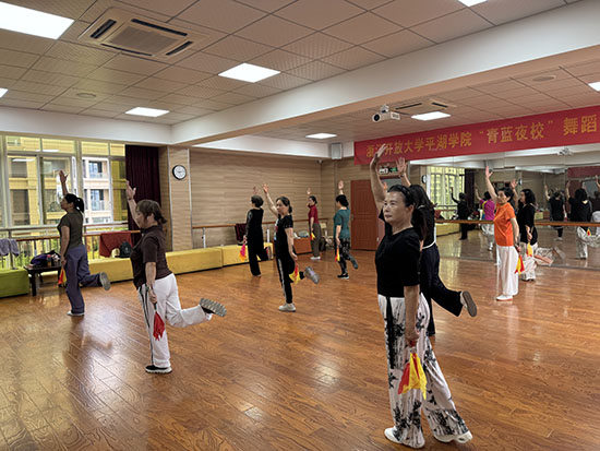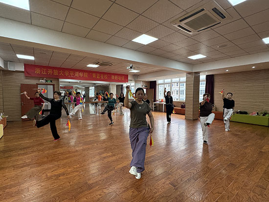 木蘭拳是一項武舞相融、剛?cè)岵?jì)的課程,學(xué)員們一伸一展、一轉(zhuǎn)一蹲、一揮一踢,盡展柔美的英姿,同時也起到了強身健體,愉悅身心的效果,大大提升了老年學(xué)員的幸福指數(shù)。(浙江老年開放大學(xué)平湖學(xué)院)