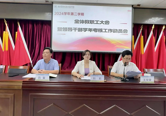 7月4日上午,我校召開2024學年全體教職工大會暨領導干部學年考核工作動員會。湖州市教育局黨委委員、基教處處長劉莉等考核組成員、校領導班子及全體教職工參會。