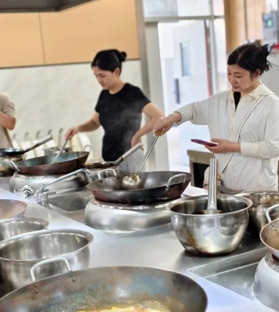 來自金華蘭溪的陳姓姐妹是課堂上的亮點,姐姐告訴我們:“每次回蘭溪我們的行李總?cè)麧M衢州鴨頭和水晶糕,親友們就饞這口”。得知學校開設培訓班,姐妹倆立即報了名,妹妹表示:“以后在家就能做,讓老家親友嘗到衢州的地道味!”這樣的故事正是培訓連接地域情感的生動體現(xiàn) —— 以技藝為媒,讓 “衢州味道” 成為傳遞鄉(xiāng)情的紐帶。