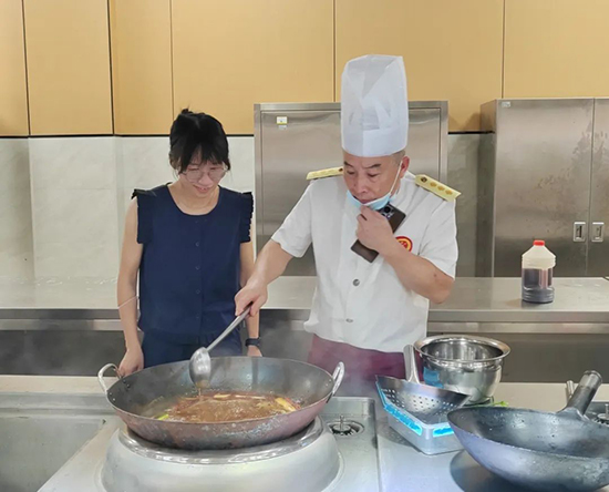 在實訓現(xiàn)場,專業(yè)教師將傳統(tǒng)技藝系統(tǒng)化拆解,從鴨頭處理的關鍵到鹵湯調(diào)配的核心,從水晶糕原料配比到蒸煮火候的把控,任課教師結(jié)合實操演示細致講解,讓看似復雜的制作過程變得清晰易懂。學員們專注研習,在教師手把手指導下快速上手。當親手制作的鴨頭出鍋、水晶糕成型時,滿室香氣與歡聲笑語交織成為技能傳承的生動注腳。