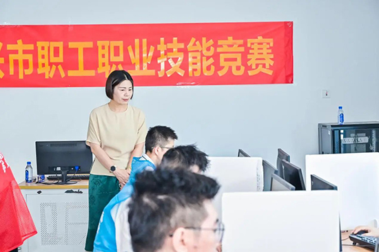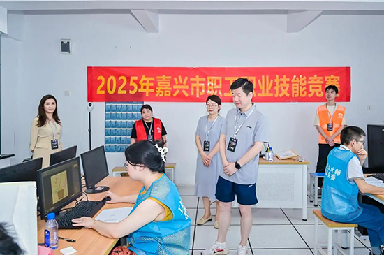 嘉興市總工會(huì)勞動(dòng)與經(jīng)濟(jì)工作部部長沈忠橋、嘉興技師學(xué)院校長錢琴梅、副校長謝默親臨賽場指導(dǎo)工作。